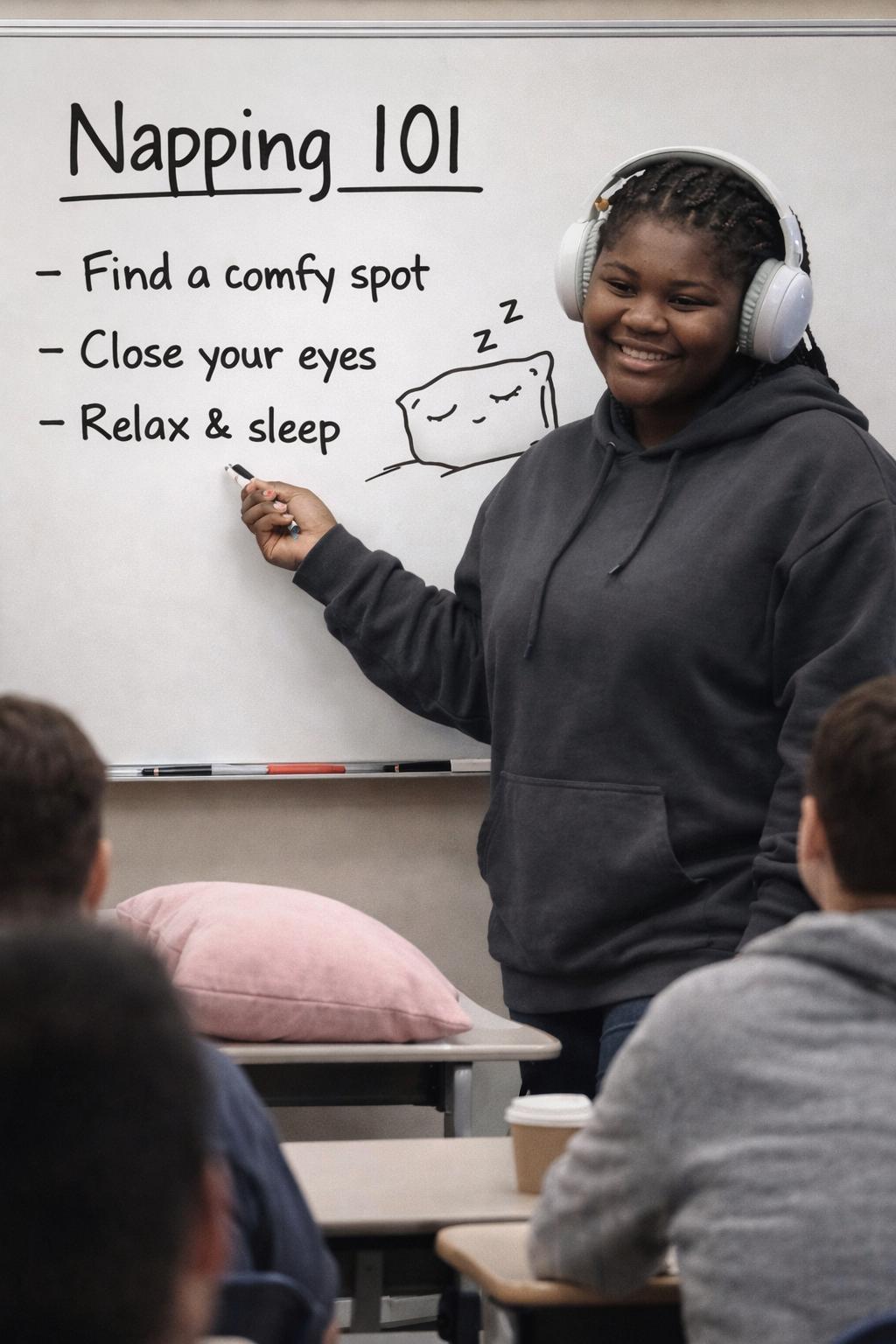 Grace would be perfect for teaching her fellow students the incredible art that is napping in school. Let’s be honest – high school is exhausting! But what better way to reenergize than to catch a few extra minutes of sleep? In this class, Grace teaches the specialized skill of reaching full REM sleep with your eyes open, syncing your sleep schedule to your free periods, and sleep efficiency as a whole.