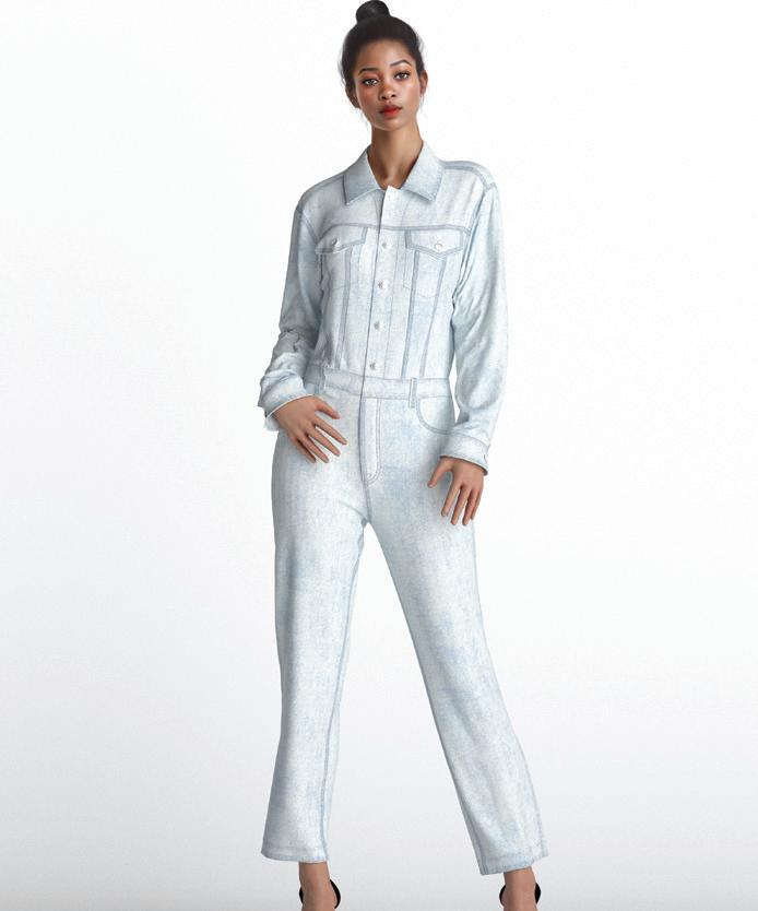 Jumpsuit features structured puff shoulders, starry details, a sleek fit, and lustrous, comfortable fabric.