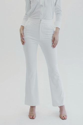 High, fitted, waisted with straight legs. The lustrous fabric stretches and hugs the body without giving any feelings of constriction.