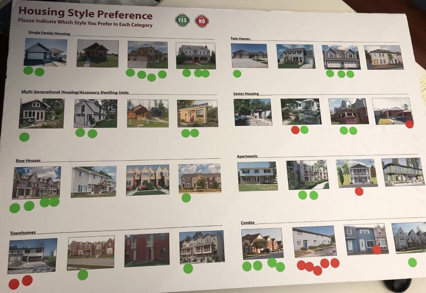 The Draft Plan Open House was held at Dassel City Hall on Thursday December 9th. This was an opportunity for residents to look at copies of the draft plan, walk around to interact with various displays as well as ask the project team any questions they may have. The interactive stations included visual preference surveys for commercial areas and new housing (rental and owner occupied) as well as the existing land use map and draft future land use map. Great feedback was gathered at this event particularly on the future land use, and areas the City may be able to expand and provide infill development of a flexible nature. At the meeting many stakeholders felt that the area on the north west corner of the Highway 12 and 15 interchange should be a more flexible land use category than “commercial” as noted in Chapter 4 of the plan, we adjusted that area to be “Flex” which would allow for various types of development to occur in that area, leading to a more diverse economic base for the City.