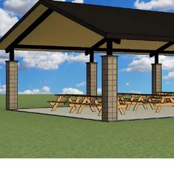 The open air shelter was destroyed by a tornado in 2023. Plans call for a new shelter and renovated restrooms in the future.