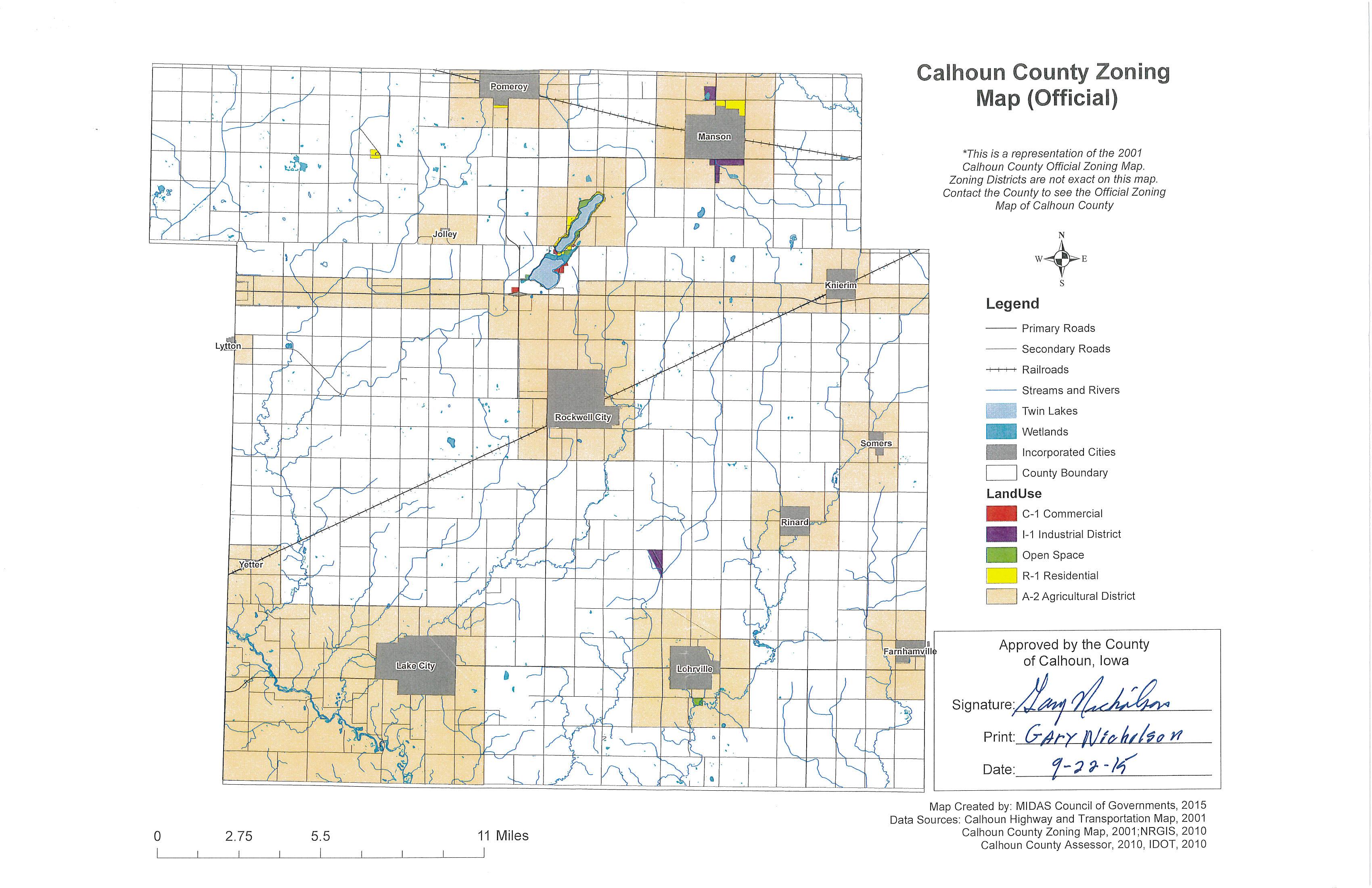 Calhoun County abuts Webster County to the west. The two counties share approximately twentysix miles of frontier. Calhoun County is primarily agriculturally zoned, including the land adjacent to Webster County.
