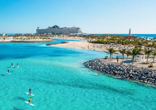 Los privilegios de MSC Yacht Club se extienden más allá del barco. Actualmente, nuestros itinerarios incluyen toda una serie de destinos que cuentan con su propia zona reservada de MSC Yacht Club. En ellas encontrarás un lugar especial en el que tomar el sol mientras saboreas el mismo nivel de privacidad, confort y servicio personal que te ofrecemos a bordo.