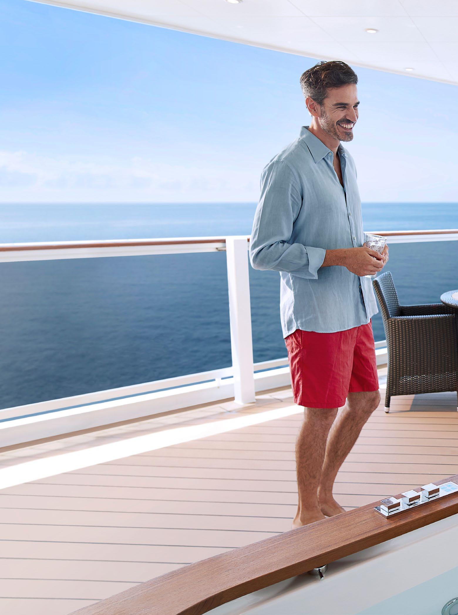 Estas suites ofrecen un nivel de estilo y confort acorde con las mejores tradiciones de crucero. Y en nuestros barcos más nuevos también tienen su propio balcón privado y todas las comodidades de primera clase.