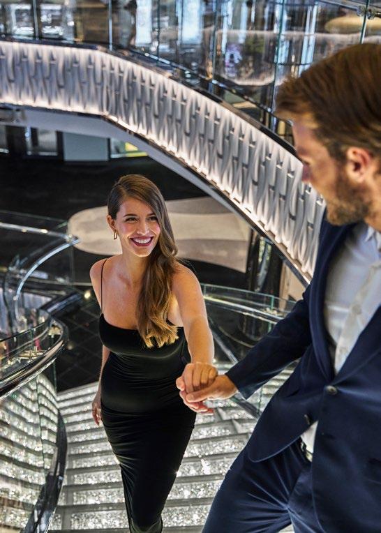Si es la noche de gala, visita el salón de belleza o la barbería. Siéntete único mientras bajas la escalera de Swarovski para comenzar tu viaje con estilo.