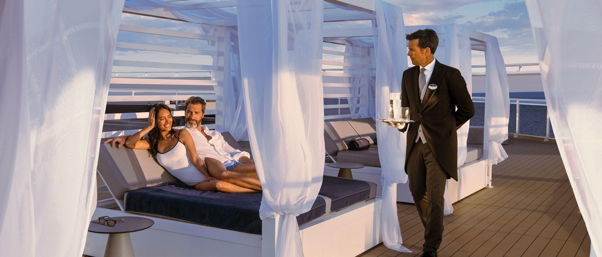 avez un accès permanent à toutes les prestations disponibles à bord. Avec des suites somptueuses, des espaces privatifs et des services dédiés, y compris un majordome et une conciergerie disponibles à toute heure, chaque journée est source de bonheur et chaque détail un moment de plénitude.