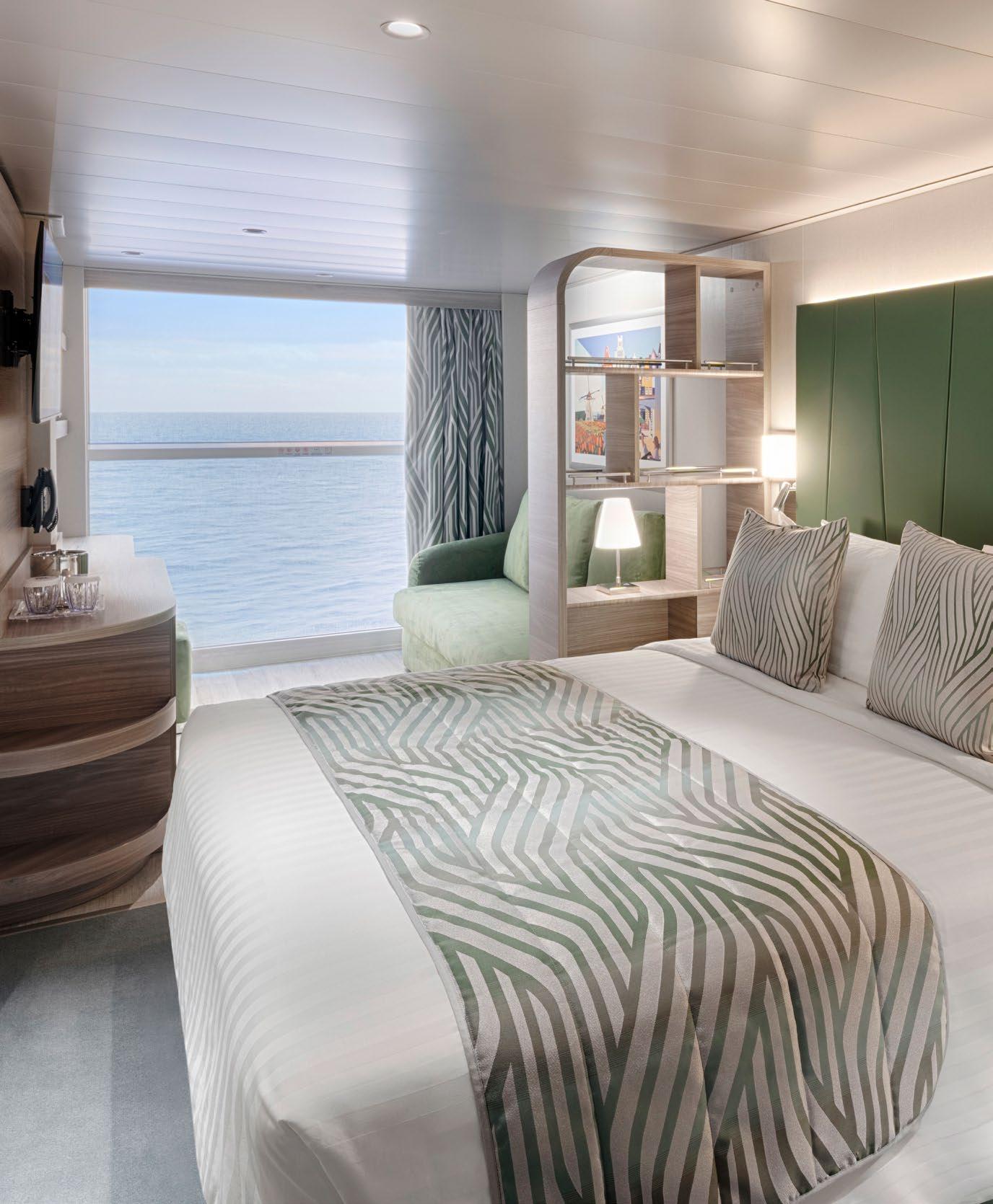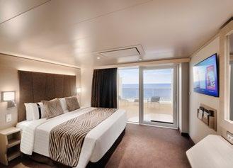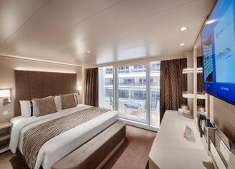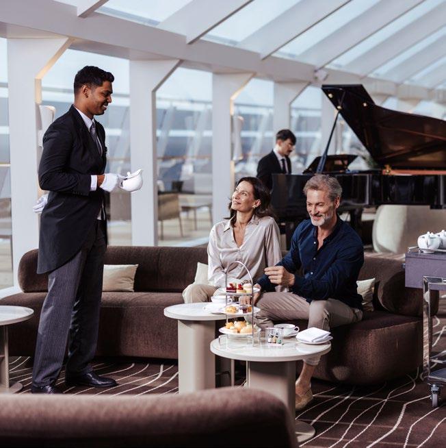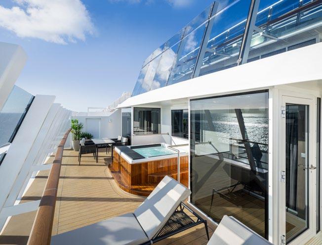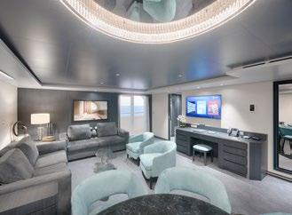 To top it all, enjoy priority embarkation and disembarkation, complimentary premium drinks, roundthe-clock butler service, a 24-hour concierge reception and room service, plus an unlimited internet package.