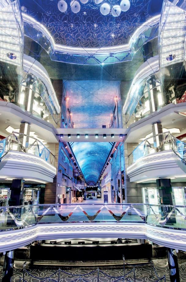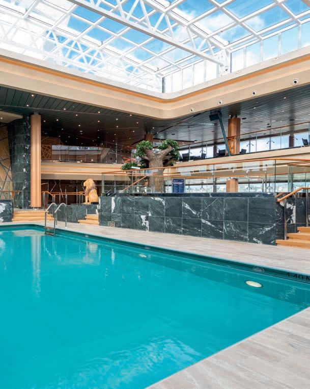 Locais de refeição, spas, academias, entretenimento, bares, lounges e lojas serão modificados para garantir o distanciamento social. Práticas e procedimentos de governança serão reescritos para assegurar protocolos de limpeza minuciosos e frequentes que aprimoram ainda mais nossas práticas atuais. A disponibilidade de estações para limpeza e higiene das mãos em todos os locais de refeições e outros a bordo será aumentada.