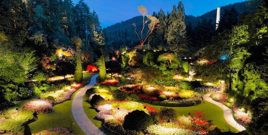 Viva a magia dos Butchart Gardens iluminados à noite, com luzes que transformam caminhos e fontes num cenário lindo. Depois, explore o Inner Harbour de Victoria, com o Empress Hotel, a Assembleia Legislativa da BC e Chinatown.