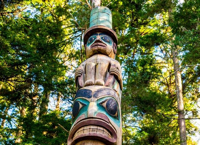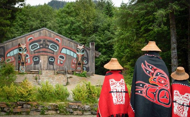 Descubra a herança Tlingit na Vila Nativa de Saxman: desfrute de canções e danças tradicionais, trajes típicos, construção de canoas e escultura de totens.