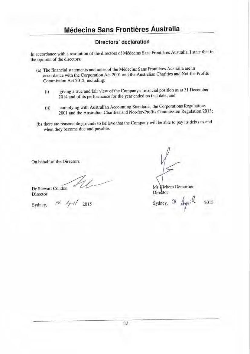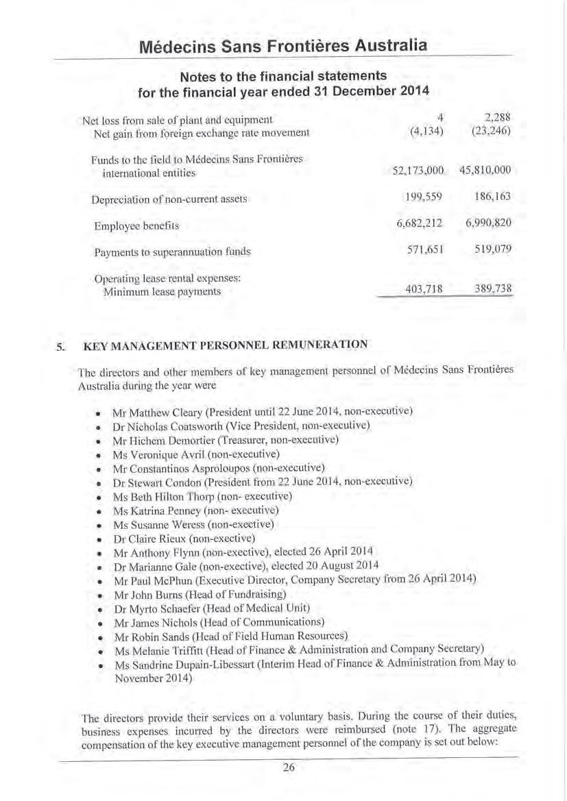 I was humbled by the particularly generous financial support we received from the Australian public in 2014. The Australian public donated a total of $72.3 million, mostly through the Field Partner monthly giving program. Many supporters were motivated by the devastating images coming out of West Africa, and the leading role taken by Médecins Sans Frontières in fighting the Ebola outbreak. But I was thankful for the ongoing trust you place in us by providing untied funding, allowing us to provide humanitarian assistance where it is needed most. As you will see throughout this report, your donations allowed us to support many other essential medical programs beyond the Ebola outbreak. On behalf of our field staff and patients, thank you for your ongoing and generous support. It is so very much appreciated.