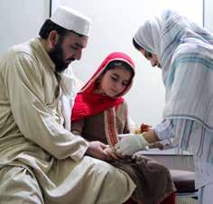 COVER PHOTO Subhan calms his daughter Afia as she receives an injection for cutaneous leishmaniasis at MSF’s treatment centre in Naseerullah Khan Babar Memorial hospital, Peshawar. Pakistan, June 2019. © Nasir Ghafoor/MSF