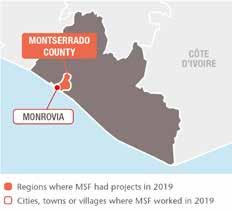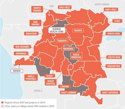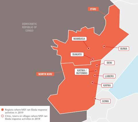 vaccine supply transparency. Our teams continued to tackle the disease in North Kivu and Ituri provinces but insecurity and the failure to gain people’s trust impeded activities. Two of the Ebola treatment centres we ran in North Kivu were attacked and burned down within days of each other in February.