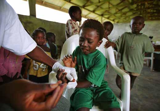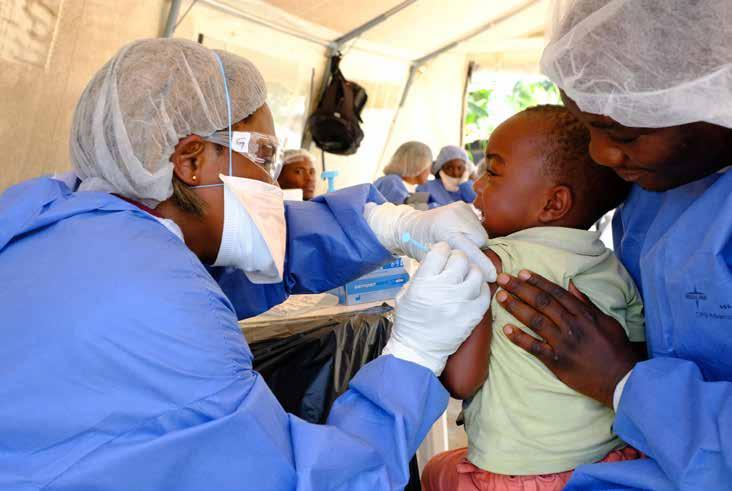 Large-scale measles outbreaks swept across several countries during 2019, resulting in thousands of deaths. DRC was particularly hard hit, with 310,000 cases reported and around 6,000 deaths, threequarters of them children under the age of five. In one week alone in November, nearly 10,000 cases were recorded across the country.