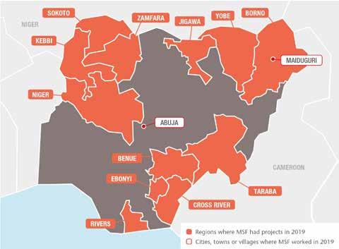 Countries in which MSF only carried out assessments or small-scale cross-border activities in 2019 do not feature on this map.