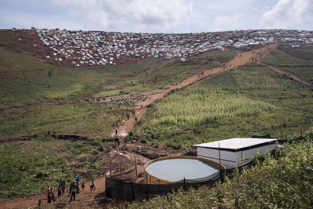 The people who have ended up internally displaced live in often terrible situations in camps, where transmissible diseases and sexual and gender-based violence are common.A view of the water, sanitation and hygiene facilities that MSF teams have installed in Rho displaced people’s camp. Democratic Republic of Congo, December 2021. © Alexis Huguet