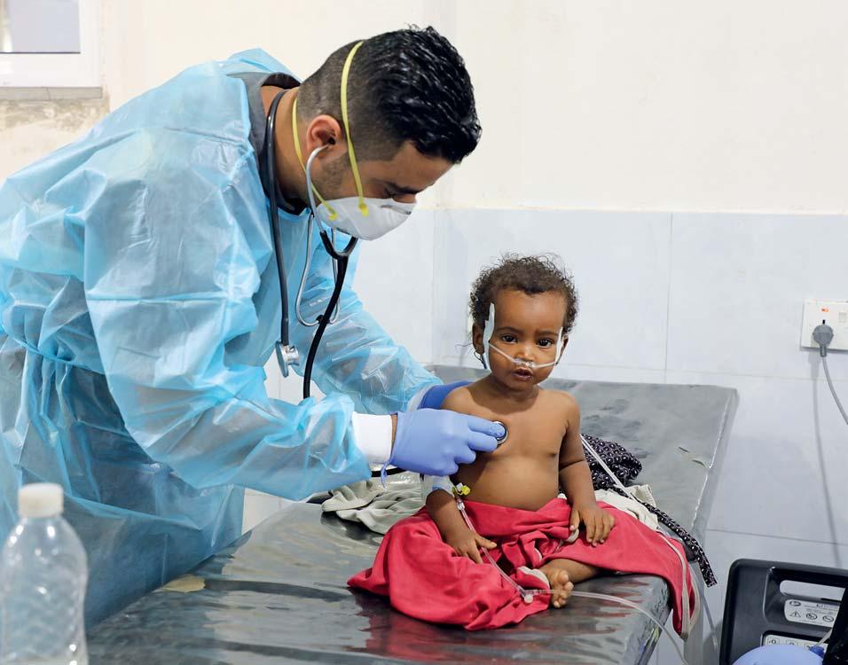 An MSF nurse examines a patient in a cholera treatment centre in Idlib, northwest Syria, where a major cholera outbreak has resulted in at least 15,000 suspected cases and 60 deaths.