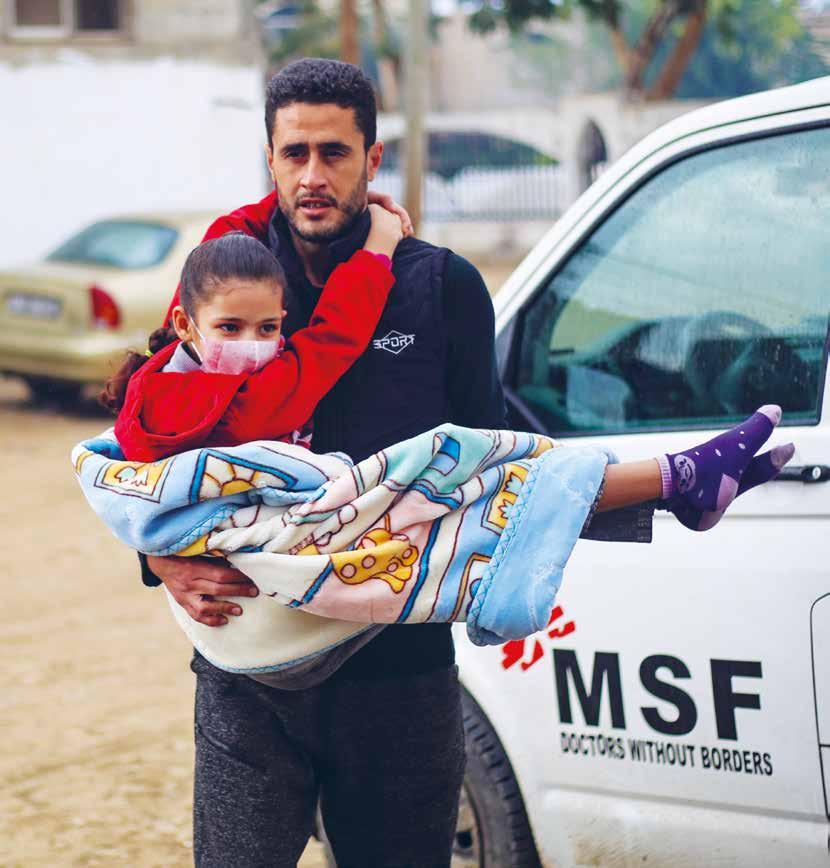 Cover image: A man carries a wounded child into the MSF-run clinic at Rafah