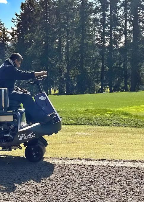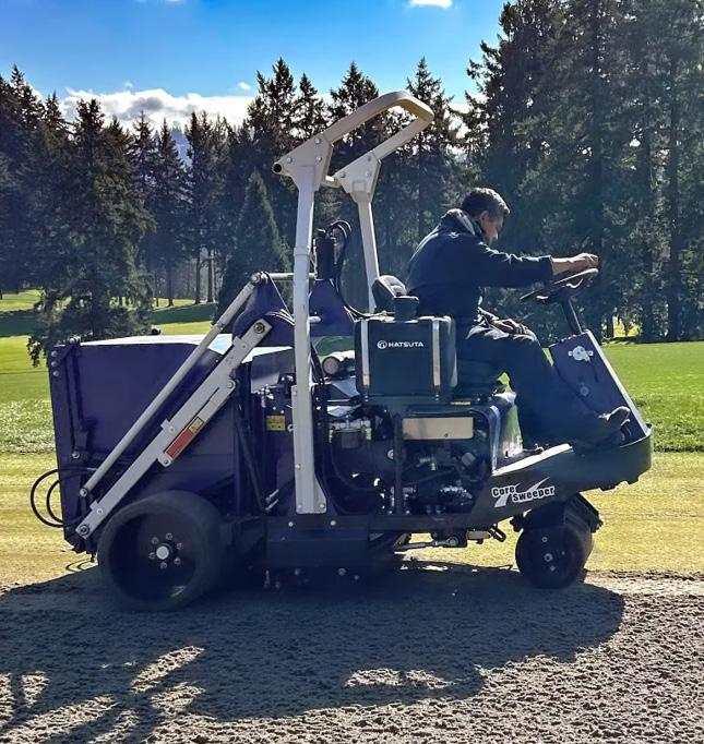 tools and plenty of elbow grease to get the job done. There is nothing wrong with sticking to methods that are familiar, affordable and proven. That said, labor challenges and shifting spring weather have more superintendents looking for ways to speed up aeration and reduce wear and tear on staff. Sweepers and core harvesters collect and move cores quickly and improve efficiency during aeration cleanup, helping crews stay on schedule and get surfaces back into playable condition sooner. Machines like the Hatsuta Core Sweeper are drawing interest because they can help streamline cleanup.