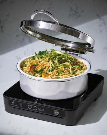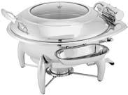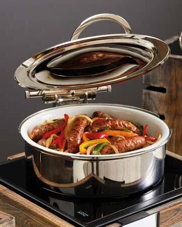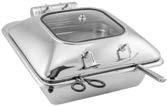 Elevate your buffet service with D.W. Haber’s Hinged Chafers. With the capability to work on induction, heater stands, or chafer frames, these chafing dishes feature a clever, patented hinge that will stop the lid in any position, making it the ultimate choice for foodservice. These vessels are available with a solid or full glass lid, and have a unique built-in condensation system that returns condensation back in to the water pan.