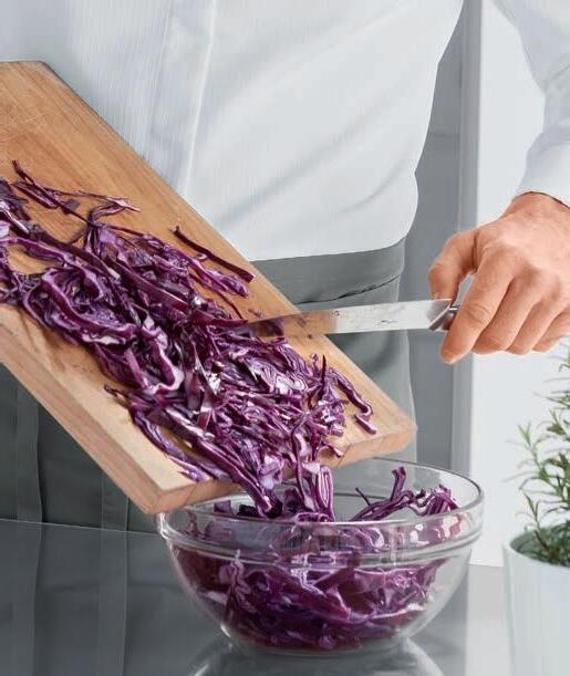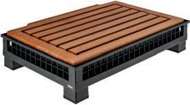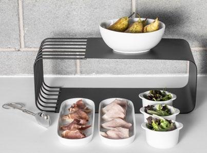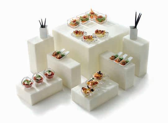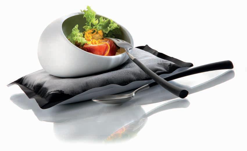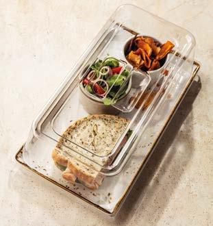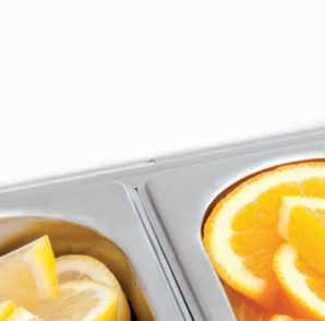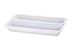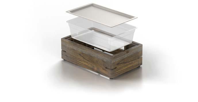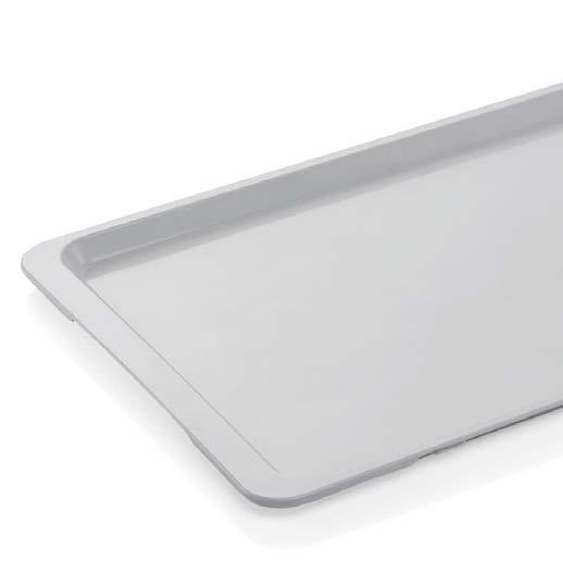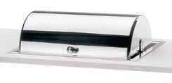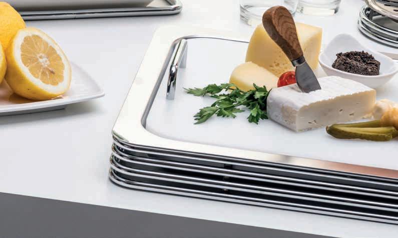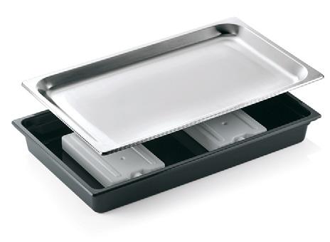 18/10 stainless steel base / roll top cover monobloc fi xed on the tray underneath with big openings on two sides / chilled with professional ice packs / service tray GN 1/1 available in 18/10 stainless steel, porcelain and PE cutting board with handles