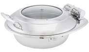 CLASSIC INOX round service tray | glass bowl | foldable lid Round mirror polished 18/10 stainless steel display / glass bowl with a capacity of 2,8 liters included / transparent PMMA foldable lid, fixed on the bowl