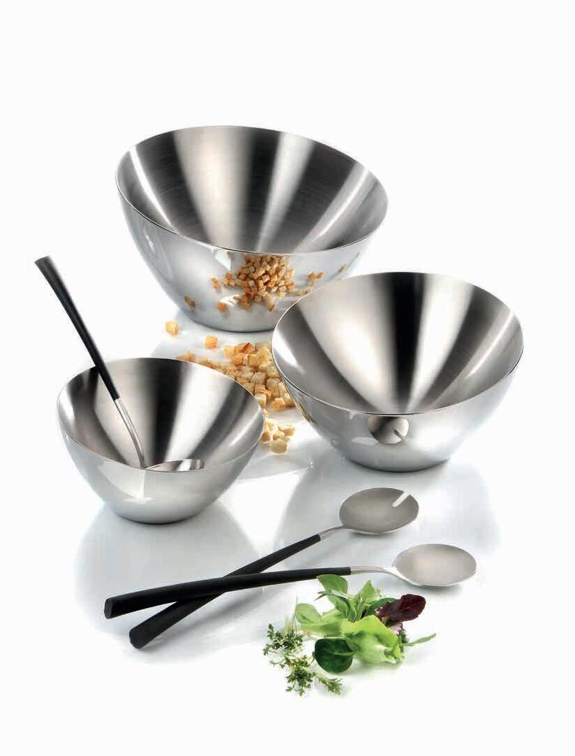 Bent structure and lid made of lightly satin-fi nished 18/10 stainless steel / one or two containers 3 liters monobloc / rubber fan / functional knob for easy portioning
