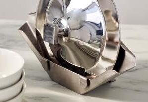 Supporto piegato e coperchio in acciaio inox 18/10 leggermente satinati / uno o due contenitori monoblocco da 3 litri / ventola in gomma / manopola per un facile porzionamento