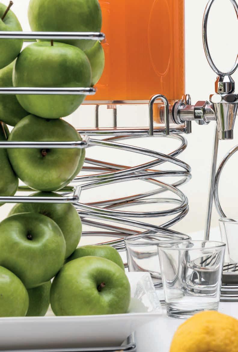 CLASSIC INOX carosello girevole per caraffe a due livelli Struttura in acciaio inox 18/10 / due livelli girevoli con ringhiere per bicchieri e caraffe / ringhiere in acciaio cromato / 4 caraffe multiuso incluse