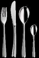 The surface structure of the brushed cutlery is matt, and looks fine and velvety. To achieve this effect, each piece is treated with special bands, resulting in a dynamic curve that gives the cutlery an added dimension.