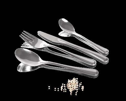 The glass bead blasting creates matt satin nuan- ces. Small glass balls act on the cutlery or other stainless steel products at high speed and great pressure, creating a soft glow that comes into it own when combined with elegant table settings.