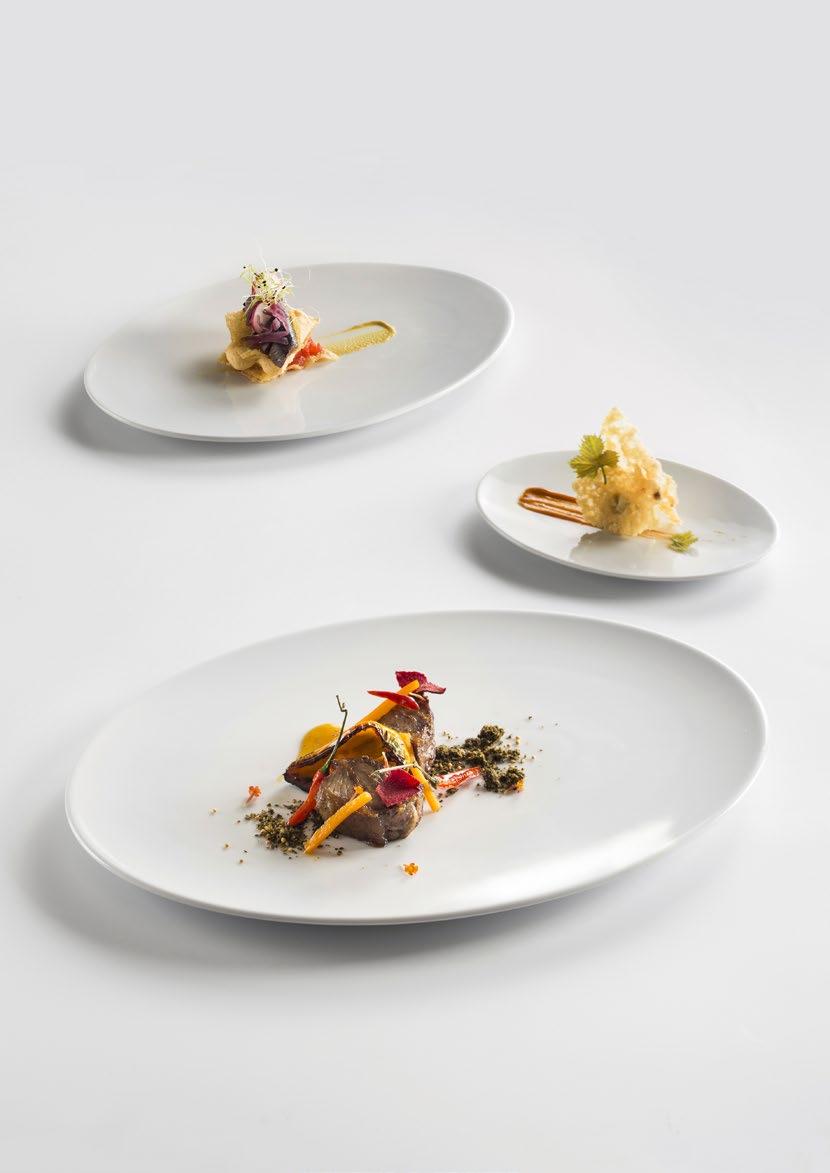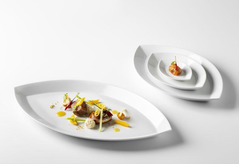 Duna is a collection of organic and unique design inspired by the warm and sinuous shapes created by the dunes in the desert. Hand-modelled in white porcelain, it is a suitable collection for any gastronomic creation and also for sauces, thanks to its capacity. With an aesthetic design and high resistance, this collection offers a multitude of plating possibilities. Collection also available in matte finish.
