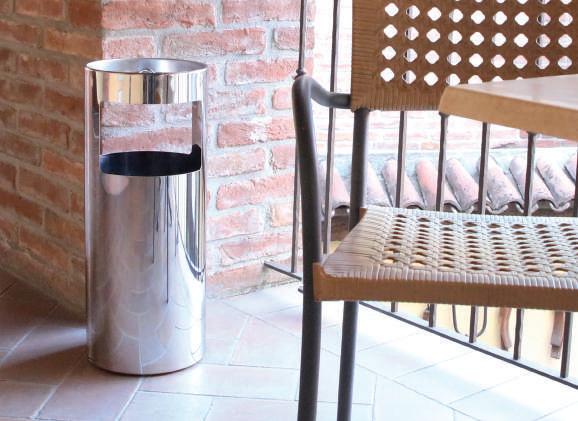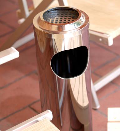 • Stainless steel or lacquered metal paper bin with ashtray top