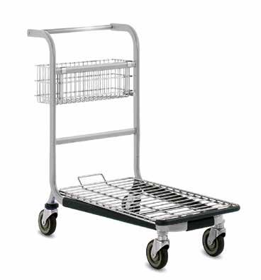Standard equipment: Can be nested to save space. Rack made of flat rolled steel tubing. Wire platform with double edging wire. With tightly meshed wire basket.