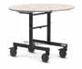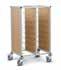 Standard equipment: Steel tube design with oval table top in wood finish with tough, sealed edge and folddown side parts. Fold-out chrome-plated rack for the hot box. The table tops can be locked in a vertical position for storage and transport. The RSVC-Comfort can also be nested to save space.