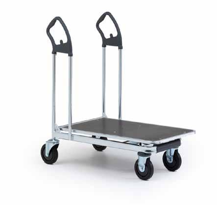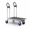 Standard equipment: Frame made of flat rolled steel tubing, round tubing bars with ergonomically shaped handles made of shatterproof plastic. Frost and water resistant wooden platform with protective frame all round made of square tube.