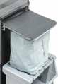 Fold-out bar for hanging a plastic sack, with folding lid as cover.