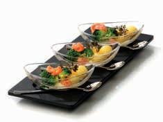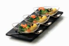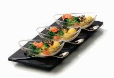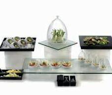 Buffet platters made of slate, laminated plastic and glass, buffet steps made of glass