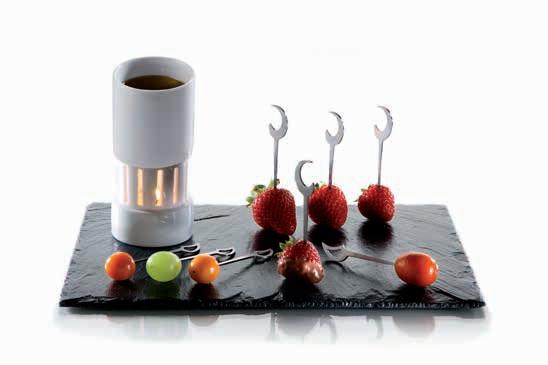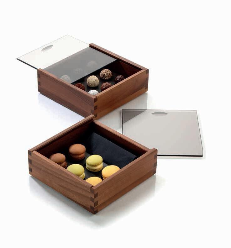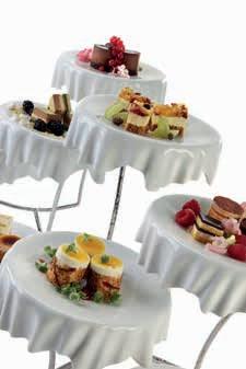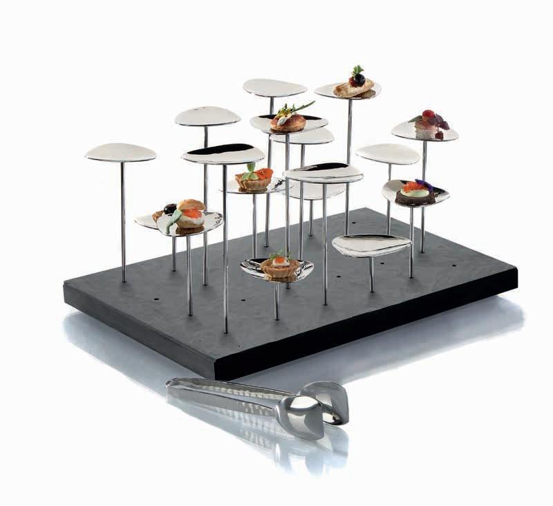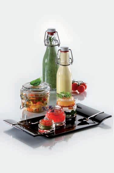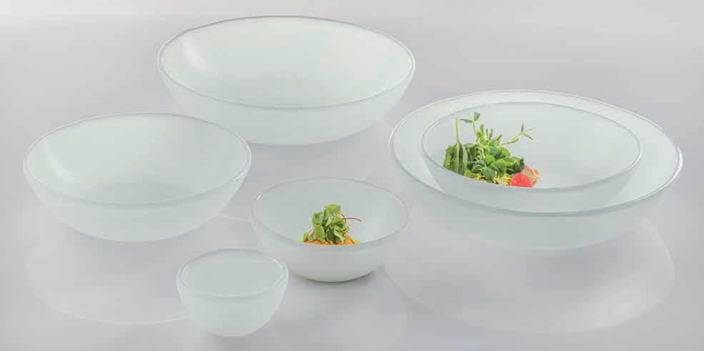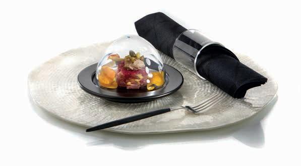 Coloured or clear glass platters can be attached to protect the surfaces. In order to ensure a secure hold, silicone feet can optionally be glued on. Ceramic “Bosque“ p. 148 Cloches p. 189