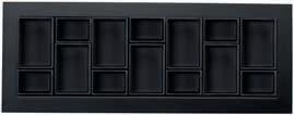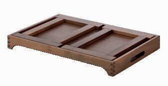 Tray system "Modul": walnut – melamine – glass and china inserts