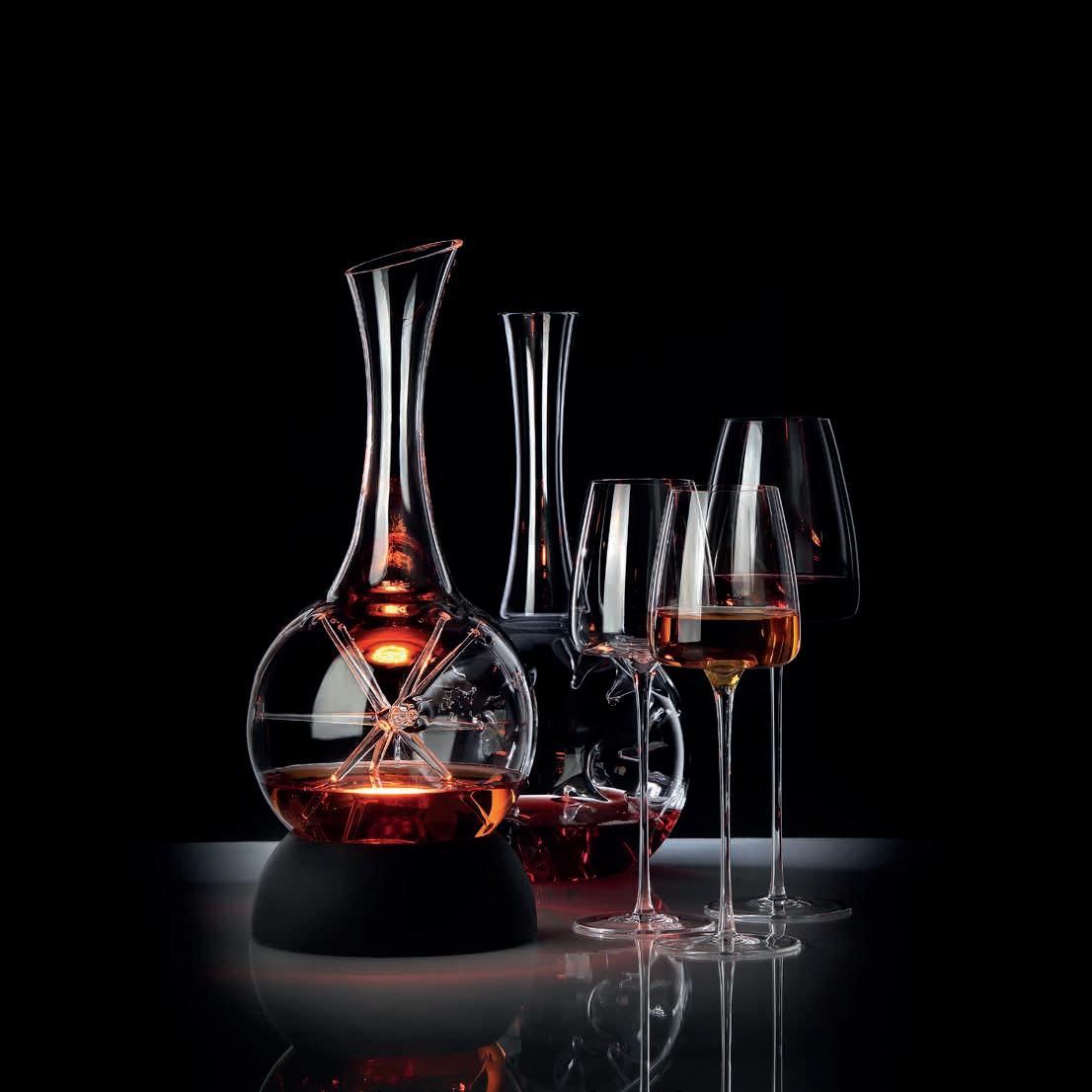 The cornerstone for a collection for ambitious wine lovers was laid in 2015 with the VISION series. These unique wine glasses have been developed together with sommelier Silvio Nitzsche from Wein Kultur Bar Dresden. The range has been extended in 2017 with “Eddy”, “Star” and other extraordinary decanters and has been made accessible through specialised retailers also for end users.