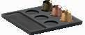 Coloured or clear glass platters can be attached to protect the surfaces. In order to ensure a secure hold, silicone feet can optionally be glued on.