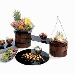 Also, for this reason, we have decided to print our new catalogue only in a reasonably small edition and to make it available in large part digital and therefore more sustainable. This plays also a decisive role regarding our novelties. Bring nature to your buffet with our new buffet displays “Stomp!” and “Sagano”. The “Sagano” buffet displays for instance are made of bamboo, an extremely fast-growing raw material.