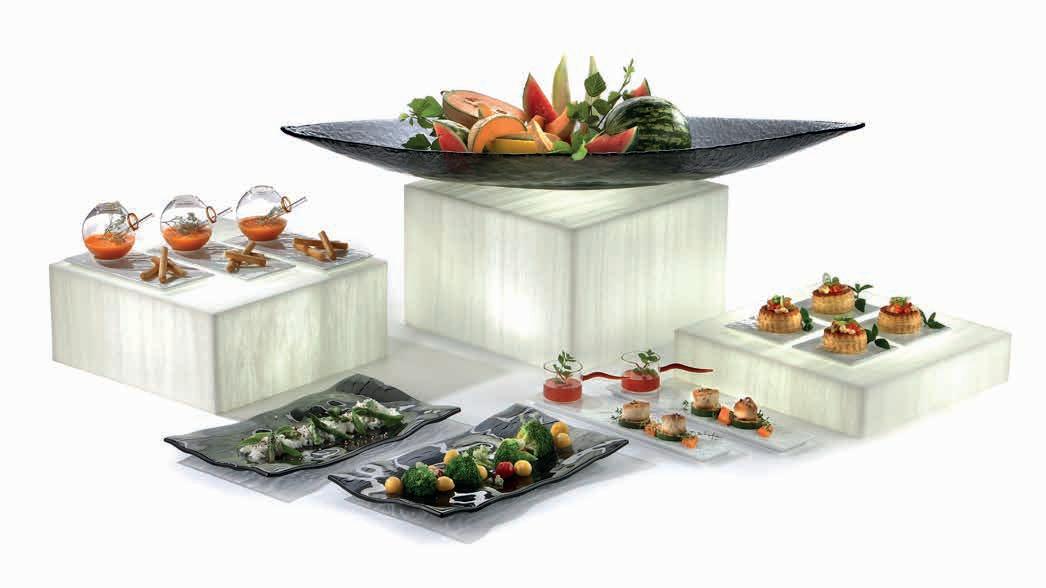 The buffet displays “Stomp!“ are made of slightly translucent resin. This ensures stunning effects, e.g. when used with illuminated buffet tables!