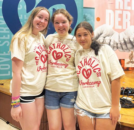 This summer, Lauren Olimpo ’27, Isabella Bisignaro ’27, and Justina Price ’27 participated in service learning through Catholic Heart Work Camp in Cumberland, Maryland, alongside the Mary, Mother of the Redeemer parish youth ministry group. Each day began with morning Mass and continued with service at local worksites, from cleaning flooded churches and classrooms to remodeling a kitchen, dining room, and garage. Evenings were filled with prayer, testimonies, and adoration. Centered around the theme Surrender, the camp encouraged students to trust in God even in life’s toughest moments, reflecting the Mount spirit of faith, service, and sisterhood.