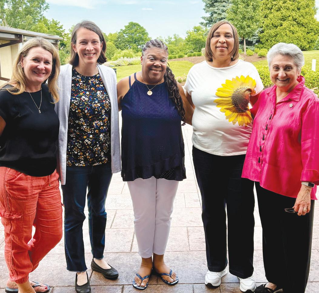 p (PHOTO) Five Mount besties gathered in Somers Point in mid-July. From left to right: Barbara Coupe Bernal ’78, Maureen McCrudden Foley ’79, Michele McKeon Foley ’79, Ellen Riley Biel ’78, and Eileen Foley McCrudden ’79