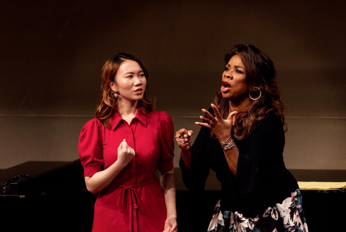 MSM presents nearly 70 master classes each year with renowned performing artists such as mezzosoprano Denyse Graves (top left) and Sébastian Jacot, First Principal Flute in the Gewandhaus Orchestra (bottom left).