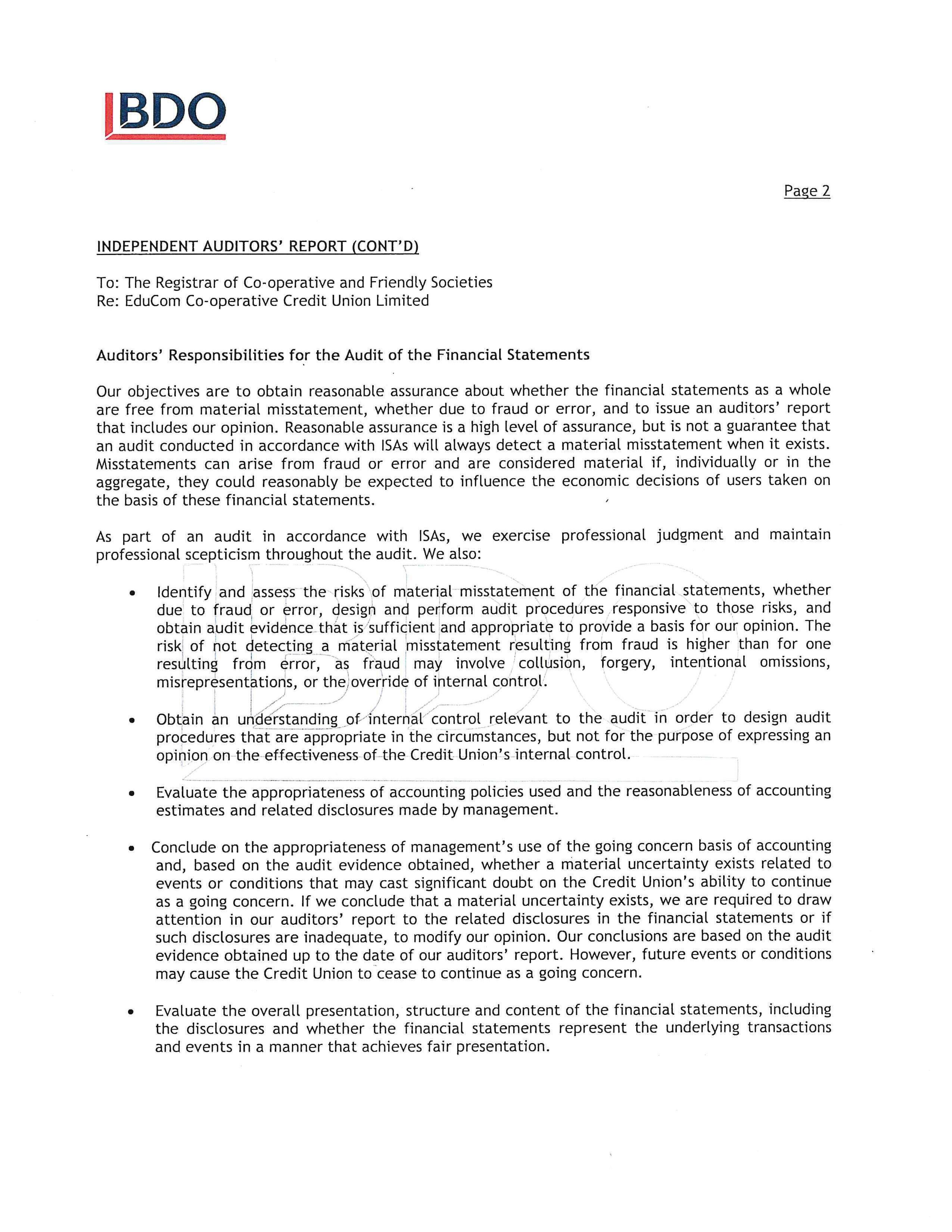 I wish to extend a grateful “Thank You” to the management and staff for once again proving their unwavering commitment and support for the strategic direction of the Board. Through their dedication and hard work, the Credit Union achieved and surpassed its targets for the year and we will continue to provide the members and the entire EduCom team with the necessary support needed to drive this organization forward. Thanks to my colleagues on the Board, members of the supervisory and credit committees, and you, our members, for your loyalty and support to EduCom Credit Union.