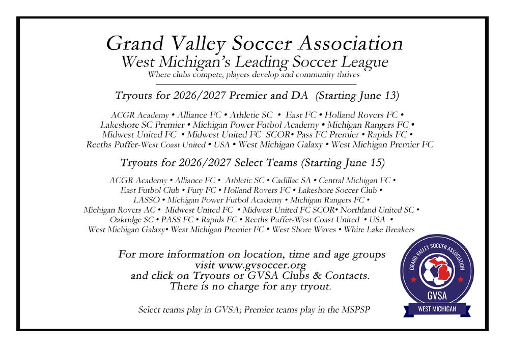 Michigan Soccer Magazine is published periodically by the Michigan State Youth Soccer Association, 9401 General Drive, Plymouth, MI 48170. www.michiganyouthsoccer.org