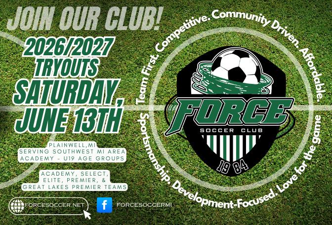 All tryouts (Premier, Elite and Select) will be held at our Portage Soccer Complex, 4422 Bishop Avenue, Portage MI